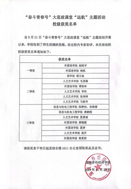作者:湖南涉外经济学院办公室日期:2023-11-29 15:05点击数: