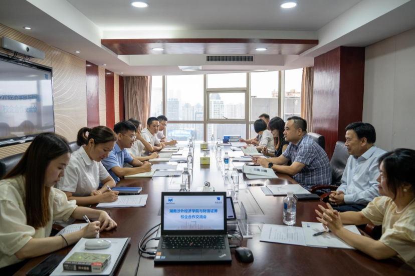 陈斌副校长一行首先抵达财信证券股份有限公司并展开座谈,与该公司总裁助理杨可名、人力资源部总经理助理曹艳就实习生的培养、金融产业学院的建设、公选课的开设、案例库的建立等方面进行了探讨和沟通。财信证券方面表示,公司与湖南涉外经济学院商学院有着良好的合作关系,愿意为学校提供更多的实习机会和资源,同时也希望能够吸引更多的优秀毕业生加入财信证券大家庭。陈斌副校长表示,希望能够进一步加强双方的合作与交流,共同提升金融教育的质量和水平。交流结束后,王姿琰副处长和商学院领导对财信证券实习基地的相关材料进行了考察,并对该基地的规范化管理和优良环境给予了高度评价。