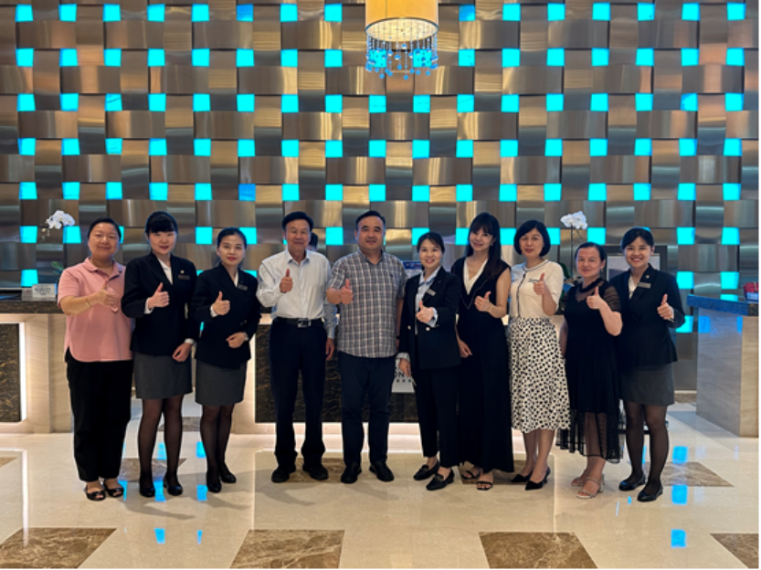 随后,陈斌副校长一行赴长沙运达喜来登酒店走访调研,听取了酒店人力资源部陈立杏总监对校企合作历史沿革的介绍,并对多年合作下取得的丰硕成果表示赞赏。该实习基地与我校已有十多年合作时间,基地运转良好,已实现实习生定期培养、校企导师互派、学科竞赛及课程建设支持及毕业生接收等常态化合作模式。在其后的座谈交流中,运达喜来登酒店总经理蒋黎明充分肯定了我校历届毕业生的工作业绩,进一步介绍了企业未来发展规划及对人才的需求,希望学校能给企业输送更多优秀毕业生,商学院王涛生院长表示未来校企之间可以基于产教融合开展深度合作,让企业切实参与到学生培养的全流程中。