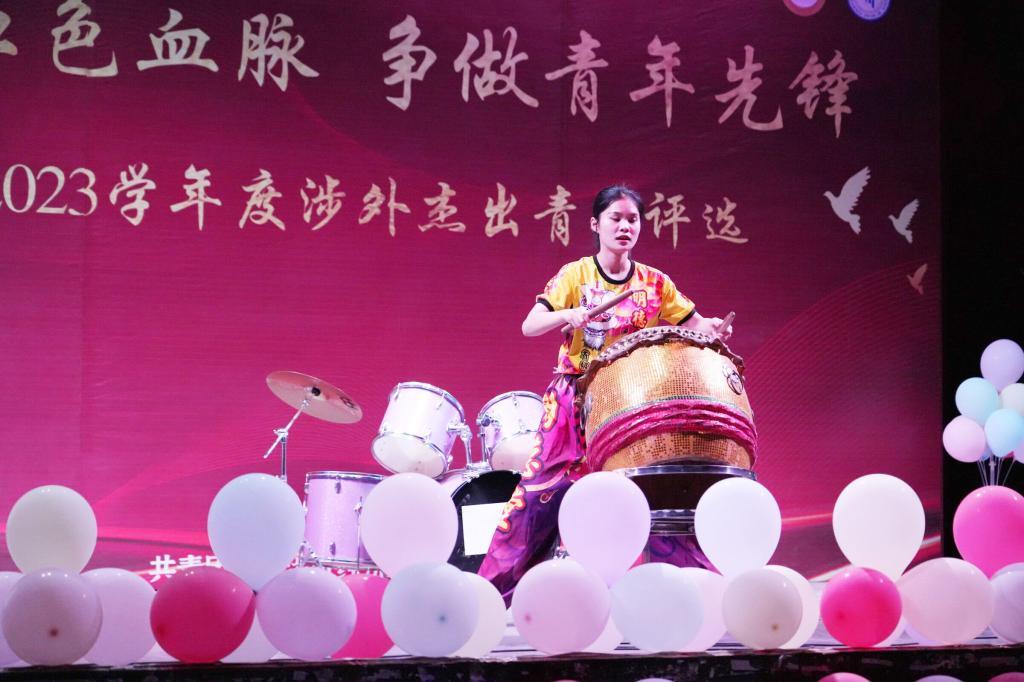 在才艺展示环节,我校2022-2023学年度杰出青年终审答辩候选人均身怀绝技。信息与机电工程学院的候选人王嘉妍气势磅礴的明德醒狮表演展现了广东传统文化的独特魅力,让全场欢呼不断;退伍复学候选人游鑫慷慨激昂的演讲,展现出为国披军装,誓要保家卫国的热血少年形象;体育学院的候选人徐宇豪同学和伙伴们整齐划一的篮球裁判操让在场的观众们感受到了属于涉外青年的生机与活力。轮流上场的杰青候选人使出浑身解数,全场气氛一浪高过一浪。最后,经过激烈的角逐,我校信息与机电工程学院王嘉妍、邵政熙、游鑫,人文艺术学院廖子涵,体育学院刘奕希五位同学脱颖而出,喜获我校涉外杰出青年荣誉称号。