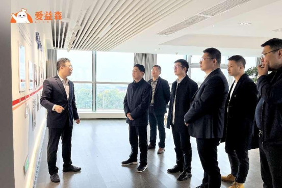 在澳优乳业爱益森生物科技有限公司总经理肖罗、澳优乳业党群行政部部长杨琛的陪同下,王耀中校长一行先后参观了澳优党建中心、澳优大学堂、员工工作环境等。