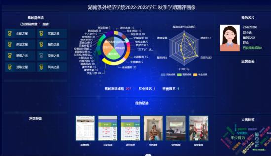 值得一提的是,在2022年秋季学期的德育考评中,有两名学生的表现十分突出。音乐学院舞蹈专业2202班赵小涵拿下全校最高分207分,人文艺术学院数媒专业2201班涂祝君则集齐了系统内的8枚勋章,成为“大满贯”获得者。