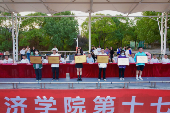 下午5点,运动会迎来尾声,鞠晨曦副校长主持闭幕式。总裁判长、体育学院院长谢明宣布比赛成绩,汪东明副校长宣布体育道德风尚奖名单,优秀裁判员、运动员名单以及团体总分。随后,高金定副校长致闭幕词并宣布我校第十七届运动会圆满闭幕。他对运动健儿所展现的“健体砺志、合作超越”的体育精神表示肯定,并指出这种团结协作、顾全大局的集体精神十分可贵,值得大力发扬。