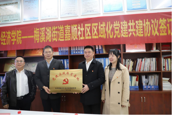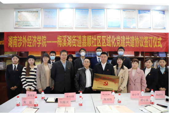 为积极推动学校与街道、社区两级区域化党建工作共建的新格局,10月28日上午,我校商学院党总支在梅溪湖嘉顺社区举行党建实践教育基地挂牌仪式暨党建共建合作座谈会。校党委委员、副校长鞠晨曦,商学院党总支书记李向明、副书记彭小平、“商小蚁”志愿服务队指导老师唐慧萍、商院融媒指导老师刘诗怡,梅溪湖街道嘉顺社区党总支书记陈湘伟、副书记龚小妹、组织委员黄丽、宣传委员刘振兴以及商学院志愿者代表参加本次座谈会。