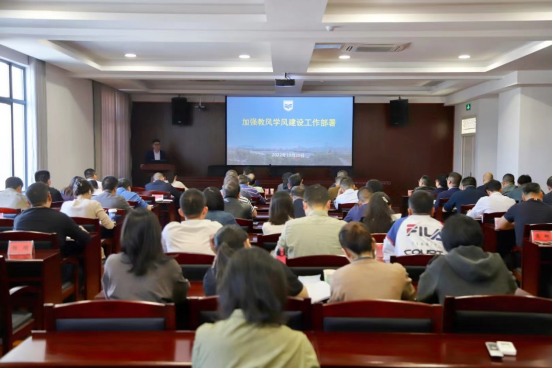 10月20日下午,我校在新综合楼A402召开学校教风学风建设工作部署会议。校长王耀中,校党委书记杨念,副校长陈斌、岳艳丽、鞠晨曦、汪东明、高金定出席会议。