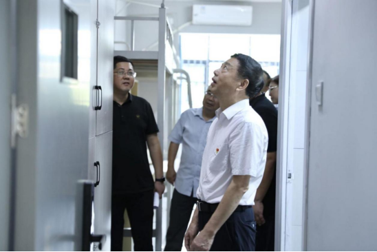 党政办主任邓青林、人事处处长黄海敏、学工处处长邝继红、教务处处长吴建功、物业公司总经理王琦等相关部门负责人陪同检查。