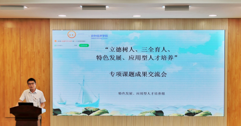 为贯彻落实中共中央、国务院《关于加强和改进新形势下高校思想政治工作的意见》提出的全员全程全方位育人的“三全育人”总体要求,强化课程思政建设,厚植学生的家国情怀。湖南涉外经济学院拨款100万余元,专项支助“立德树人、三全育人、特色发展、应用型人才培养”校级课题45项,并于5月17日和24日分别举办了“立德树人,三全育人” 和“特色发展、应用型人才培养”的专题交流会。