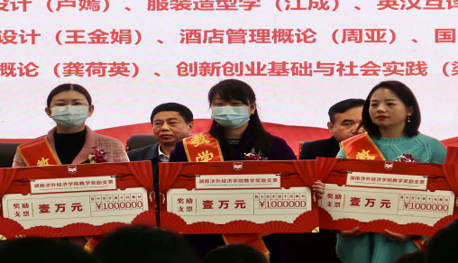 陈斌宣读了奖励决定,商学院王涛生等32人获得教学建设奖,音乐学院张希等39人获得教学竞赛奖,信息与机电工程学院陈继锋等10人获得教学成果奖,体育学院谢明等102人获得学科竞赛奖,人文艺术学院邱佳丽等64人获得教学管理奖,外国语学院(国际学院)等5个单位获得考研工作奖,合计奖金逾百万元。