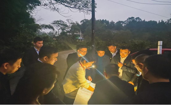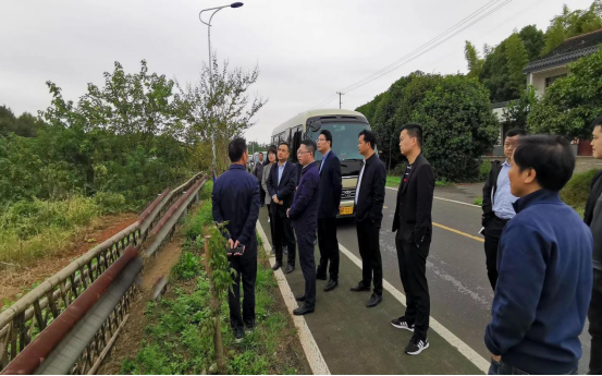 李花董事长一行在桃江县考察选址,县委书记向荣、县人大常委会主任伍令贤、县政协主席杨凯波、副县长龚胜芳、副县长李智敏等陪同考察。