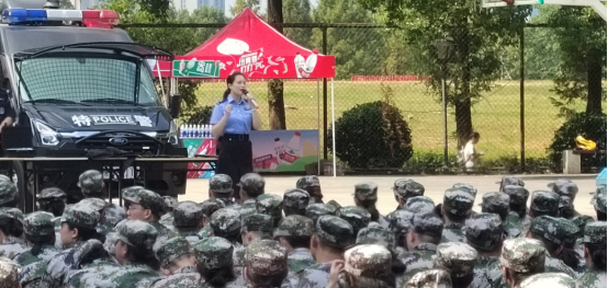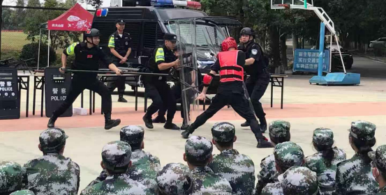 活动现场分为三个环节。第一阶段,由高新区公安分局警官章婷给同学们讲授“反电诈”专题安全教育课;第二阶段,由高新区公安分局特巡警大队进行法制安全教育和反恐防爆技能及特警装备展示;第三阶段,由安全保卫处处长夏武科组织开展消防安全教育及灭火实操演练。