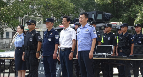 为加强2021级新生安全教育,提高新生的安全防范意识,普及安全常识,预防和减少校园电信网络诈骗和安全事故给学生们带来的人身财产损害,上好“开学安全第一课”,我校安全保卫处精心组织的“2021级新生系列安全教育”活动于9月15日在文化广场拉开了序幕,副校长汪东明出席此次活动。高新区公安分局特巡警大队大队长黄啸、副大队长柯鹏以及高新区公安分局特巡警大队、法制科和麓谷派出所等部门十余位公安干警应邀在现场现身说法。