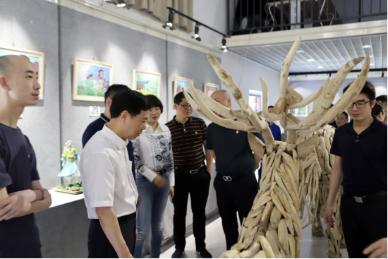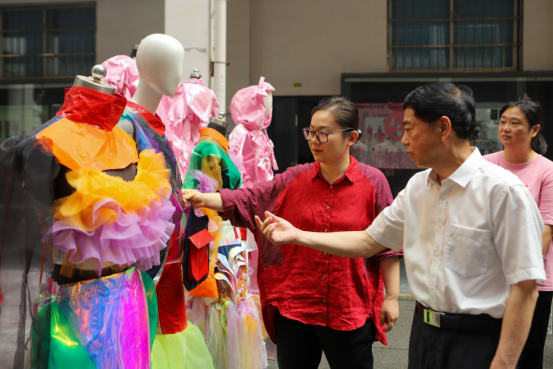 当日上午10点40分,校领导一行到达展厅。在一个个赏心悦目、亮点纷呈的作品前,连连驻足观赏、热烈讨论。讨论中,王耀中赞扬了同学们艺术水平的新高度,肯定了传承与弘扬经典的重要性,并鼓励同学们要在创作中积极思考社会问题,探索自身的潜力。