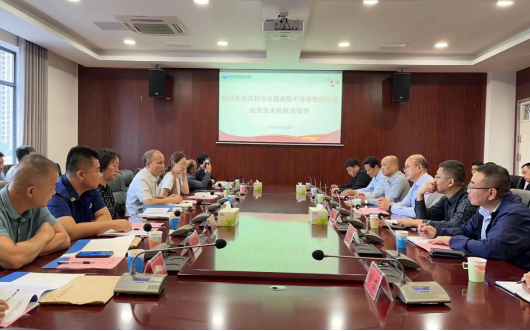 校党委书记杨念代表学校欢迎专家组来校检查和指导工作,并对学校情况进行了简要介绍。专家组带队组长金世雄介绍了本次检查行动的主要内容和相关流程安排,随后,专家组成员在相关部门联络员陪同下,深入校园,分别就特种设备安全、燃气安全、消防安全、建筑安全、交通安全、食品安全、实验室安全、安全教育及双重预防体系建设等专项工作开展实地走访和检查,并详细查看了相关制度建设和管理台账情况。
