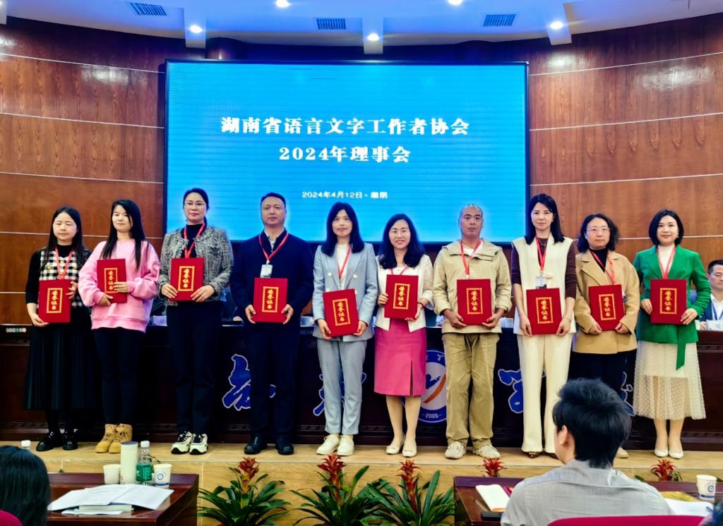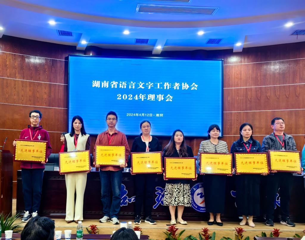 4月12—13日,湖南省第七届语言文字工作论坛和湖南省语言文字工作者协会2024年理事会暨《湘语时光》诵读大会在湘阴县知源中学举行,我校被授予“2023年度湖南省语言文字工作先进理事单位”称号,这是自2020年度以来我校第三次获此殊荣,教务处副处长王姿琰,考试中心主任陈燕参加会议并代表学校领奖。外国语学院青丽老师作为代表参加了湖南省朗读艺术水平等级考试考官培训,普通话测试站站长王姿琰获“2023年度湖南省语言文字工作先进工作者”称号。