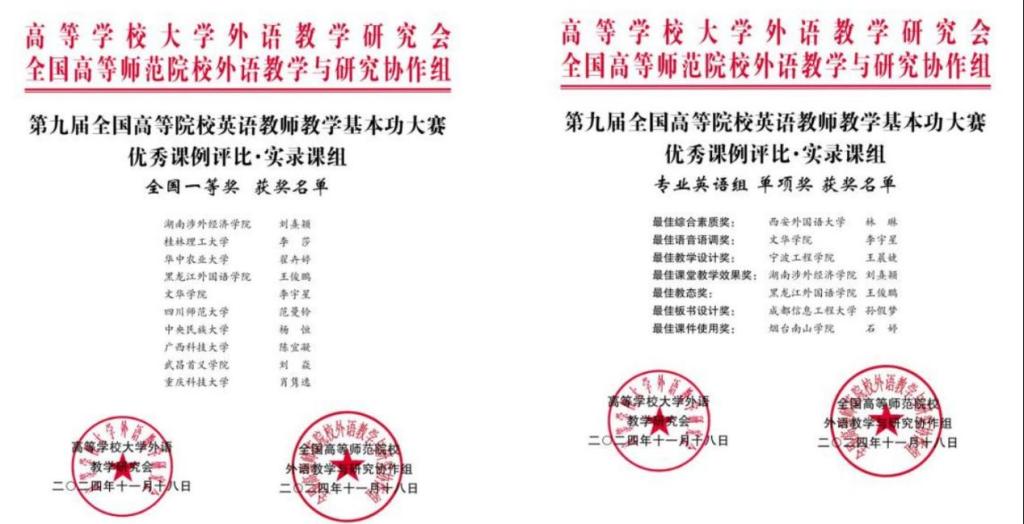 11月15日-18日,由高等学校大学外语教学研究会和全国高等师范院校外语教学与研究协作组共同主办的第九届全国高等院校英语教师教学基本功大赛圆满落幕。我校外国语与国际教育学院教师刘熹颖在优秀课例评比.实录课项目中荣获湖南省特等奖、全国一等奖第一名,并获得个人单项奖一项。