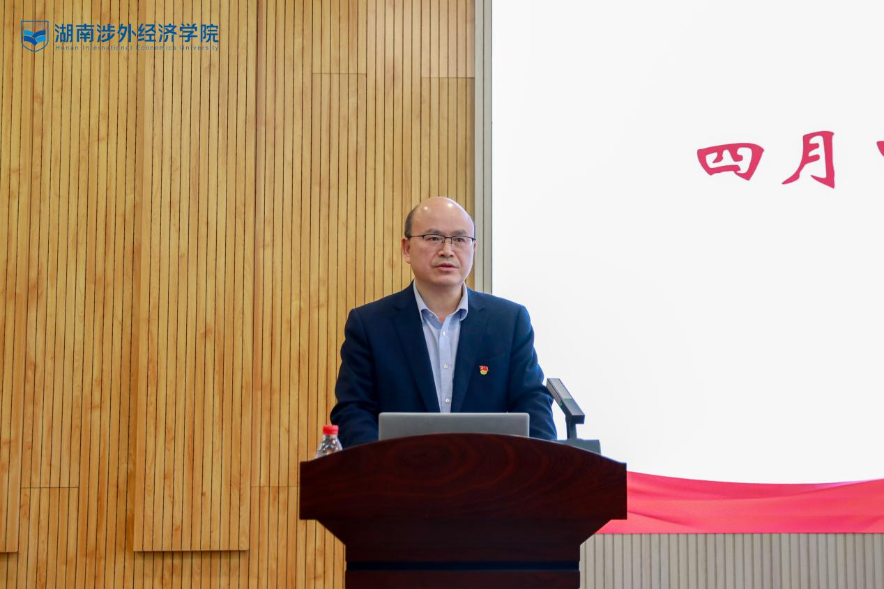 高金定副校长详细解读并传达了《湖南省大力支持大学生创业若干政策措施》,并强调学校将根据这些政策积极推进创业孵化平台的建设,进一步加强创业导师队伍的培养,为广大学生提供更为全面的支持和资源,助力更多创新创业项目的成功落地。