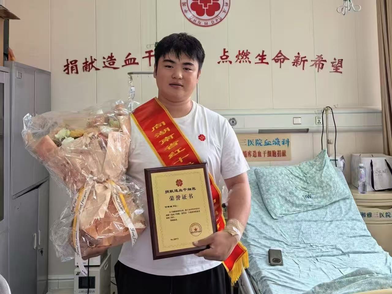2025年9月2日,我校体育学院社会体育指导与管理2306班何锋城同学在长沙市第一医院成功完成造血干细胞捐献,为一位8岁的小女孩送去重生希望。