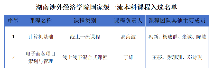 近日,教育部公示了第三批国家级一流本科课程认定结果,我校信息与机电工程学院高海波教授主讲的《计算机基础》及丁雄副教授主讲的《电子商务项目策划与管理》两门课程成功入选。这是我校在一流本科课程建设中的又一历史性突破。