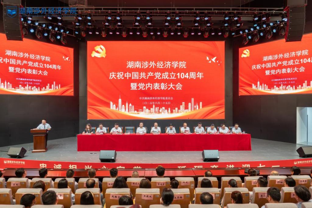 6月25日,湖南涉外经济学院庆祝中国共产党成立104周年暨党内表彰大会在世纪讲坛举行。全体校领导、校党委委员出席大会。会议由校党委委员、副校长鞠晨曦主持。
