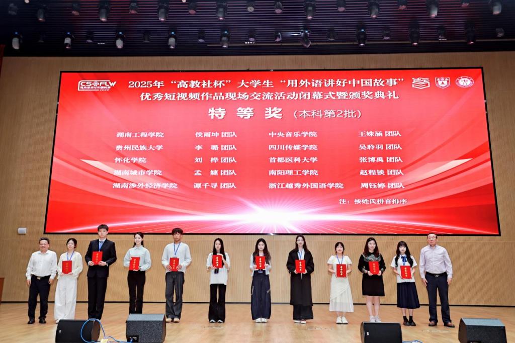 9月21日,2025年“高教社杯”大学生“用外语讲好中国故事”优秀短视频全国总决赛圆满落下帷幕。我校选送的作品《剪语・成光》在全国本科二组入围作品中脱颖而出取得总分第一名成绩,荣获全国特等奖。此前,该作品已在第三届湖南省大学生“用英语讲好湖南故事”短视频大赛中摘得特等奖——从省级夺冠到全国登顶,我校学子再度交出亮眼答卷。