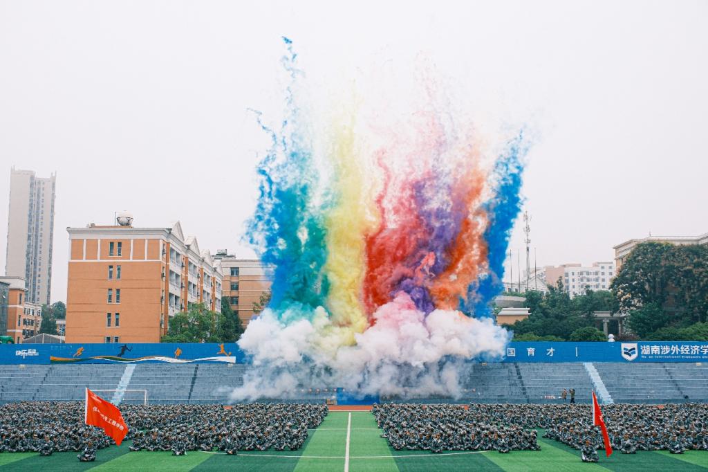 开学典礼在热烈掌声和绚丽的烟花中圆满结束。